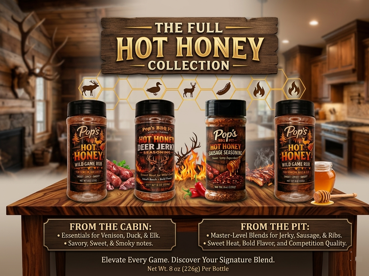 You get the Hot Honey Rub for your grilling and smoking. The Hot Honey Wild Game Rub for venison, elk, and everything wild. The Hot Honey Deer Jerky Seasoning for strips of homemade jerky that disappear before they cool down. And the Hot Honey Deer Sausage Seasoning for fresh or smoked sausage that tastes like it came from someone’s grandmother’s recipe — because it kind of did.