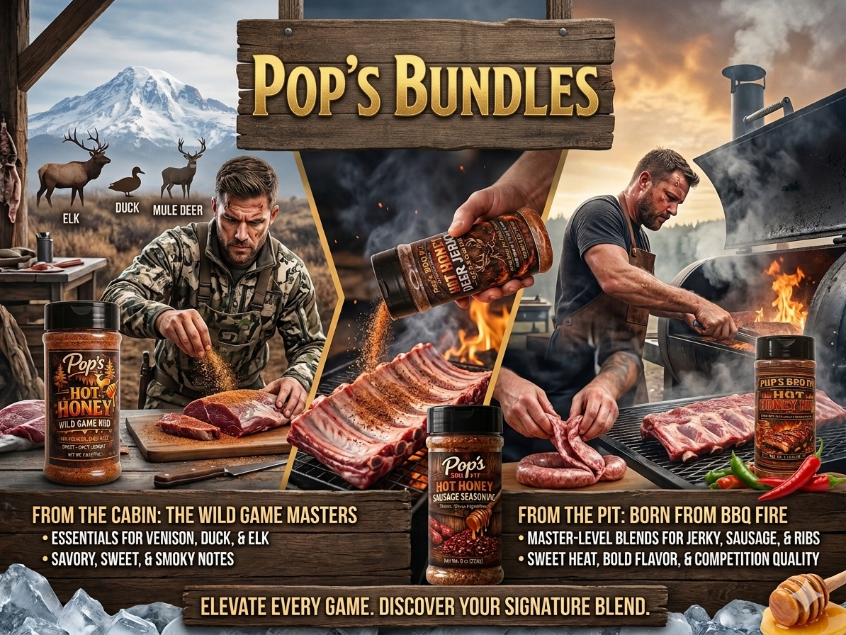 The Full Pit Bundle is the best of everything Pop’s BBQ Pit makes — seven small-batch products spanning our complete lineup, from Signature BBQ Sauces to our Hot Honey Wild Game Rub. It’s the bundle you send when you want to give someone something they’ll reach for every single cookout, every deer season, every Sunday smoke session for the rest of the year.